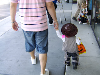 On Saturday a shopping center near our house had a Trick or Treat festival going on. We dressed Cooper in his Cowboy costume for the first time - and I'm pretty sure he loved being all dressed up. He was great about going around to each store, holding on to his "trick or treat" back SO TIGHT and putting his bag out for candy. He can't say trick or treat yet...maybe by Halloween, but most likely not until next year...