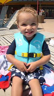 Chad and Cooper got some swim time in! Cooper had learned to swim to the wall on his own and gotten more comfortable in the water by then.